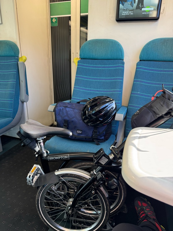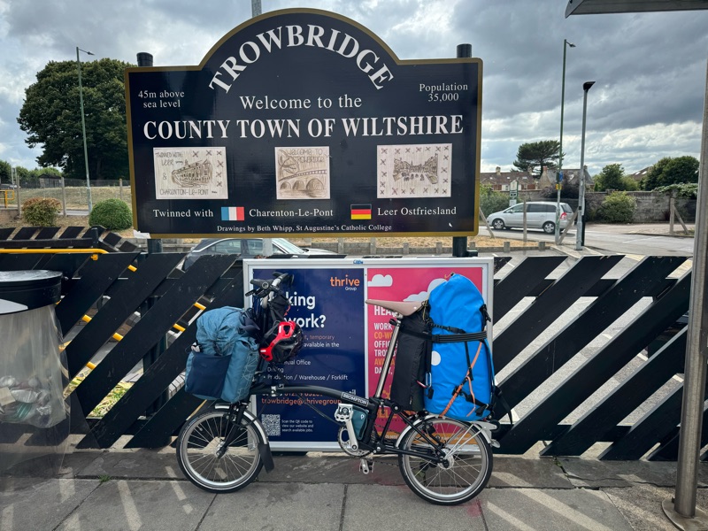 Iona soon got an invite to another Brompton Touring group camp. It would be rude not to go, especially as it was school holiday time. Thanks to a signalling issue, my straightforward and direct train journey took me on a wild detour to Trowbridge via Basingstoke! To end up on the same train I would have caught had I stayed in Southampton.